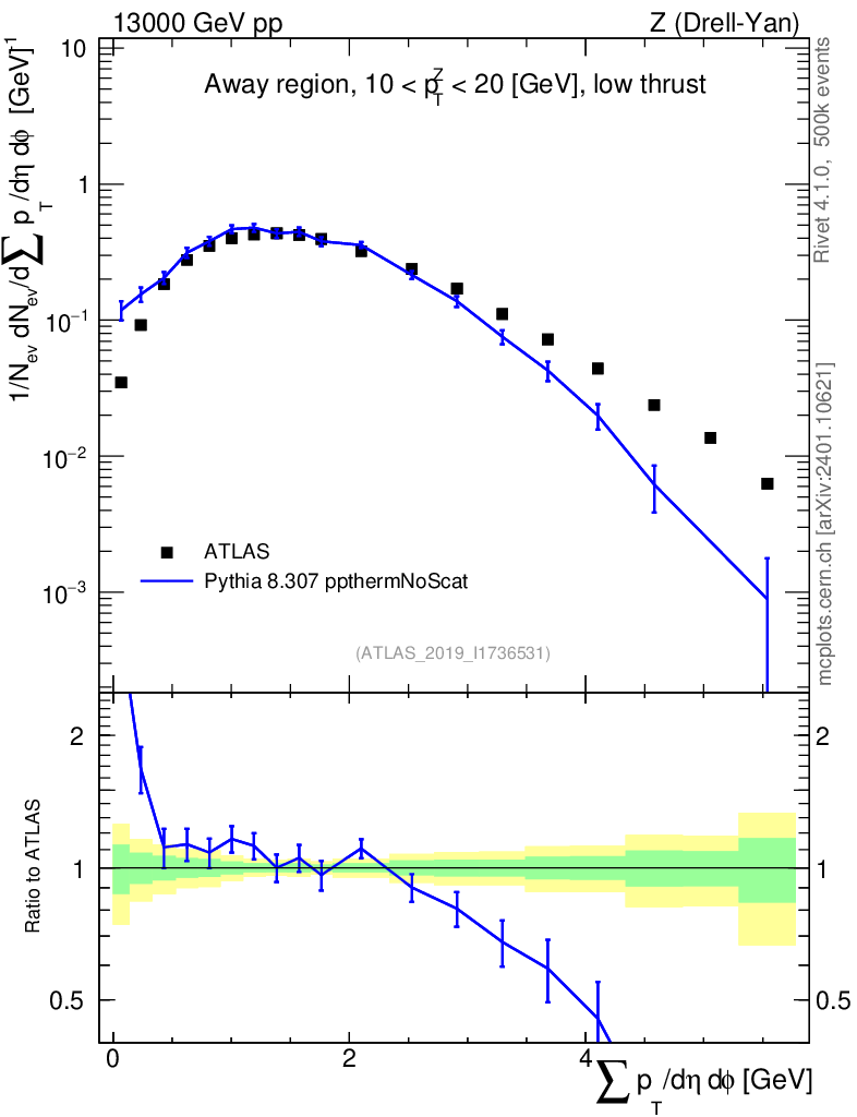 Lines: data, pythia8 8.307 ppthermNoScat |