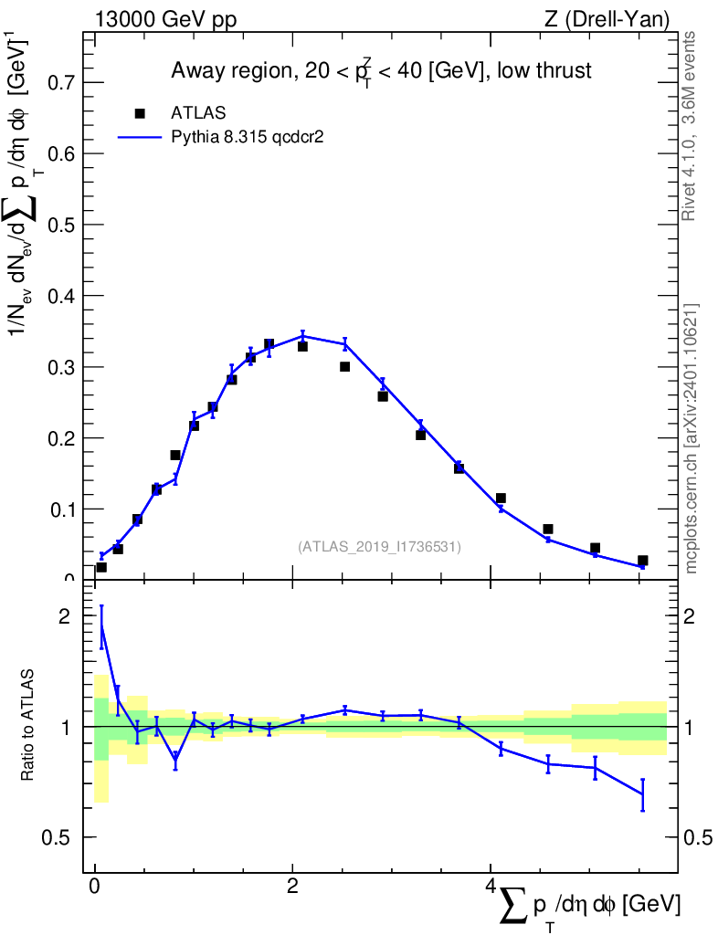 Lines: data, pythia8 8.315 qcdcr2 |