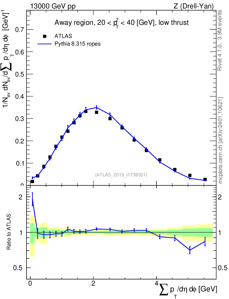 Lines: data, pythia8 8.315 ropes |