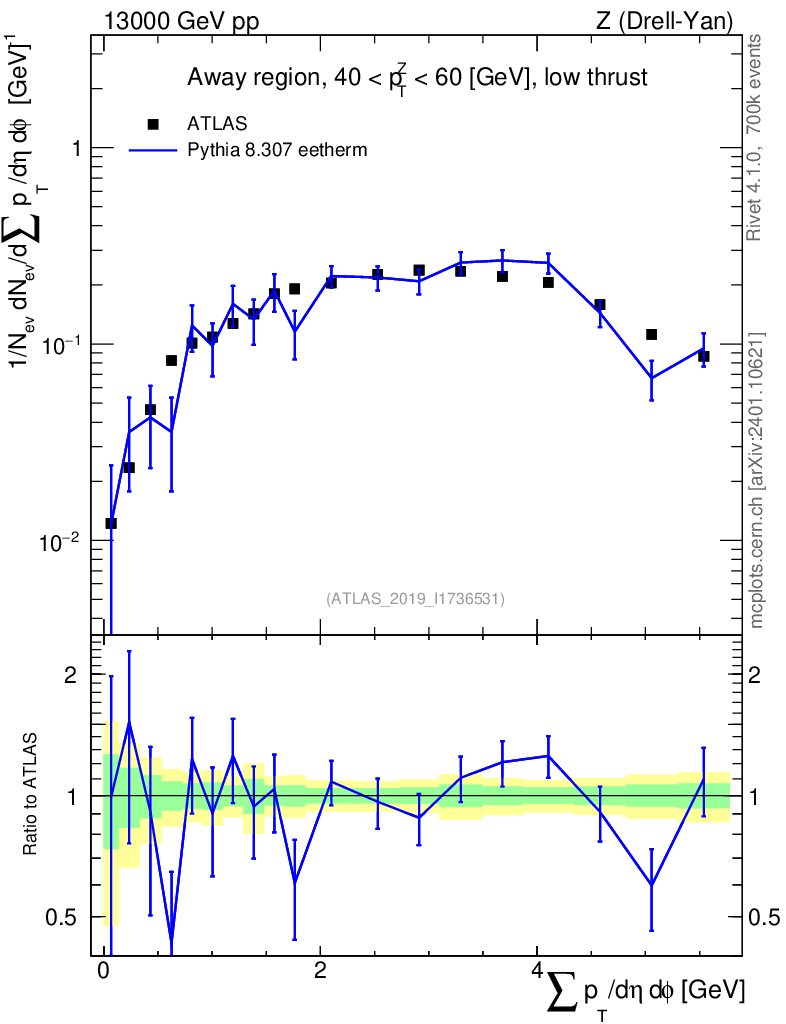 Lines: data, pythia8 8.307 eetherm |