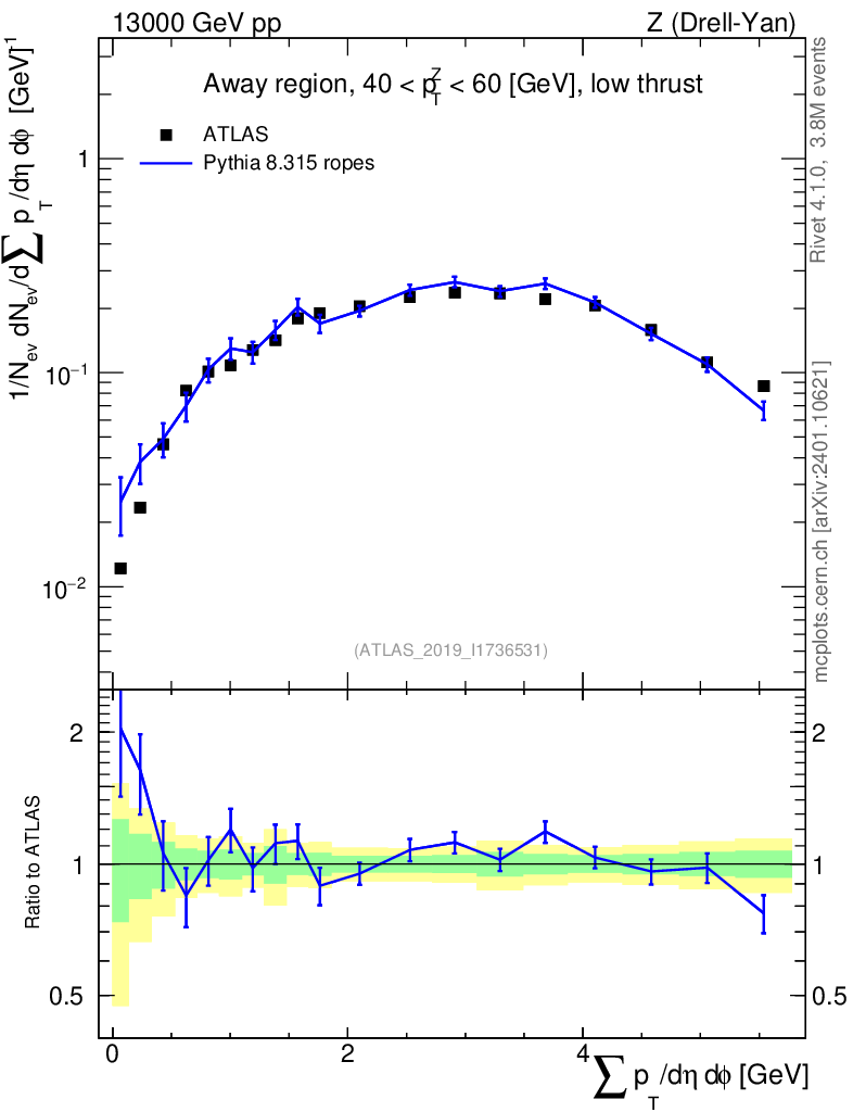 Lines: data, pythia8 8.315 ropes |