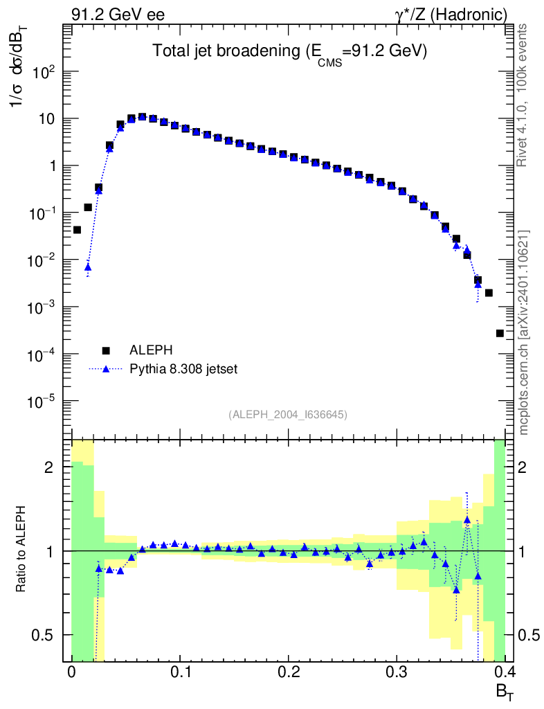Lines: data, pythia8 8.308 jetset |