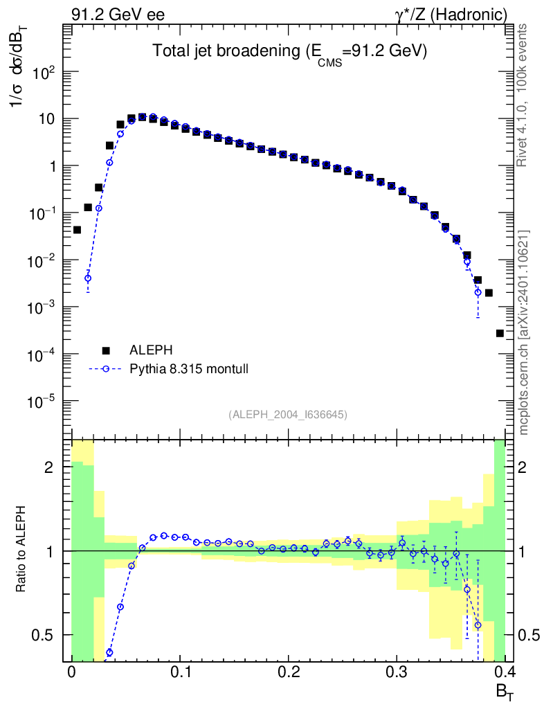 Lines: data, pythia8 8.315 montull |