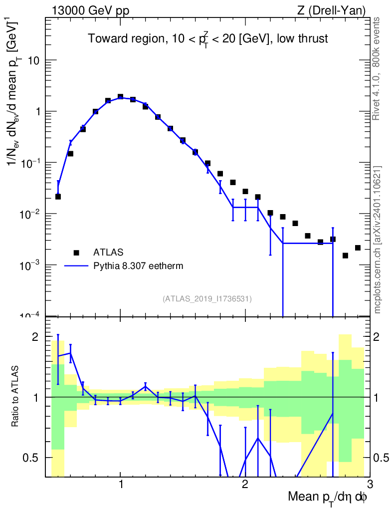 Lines: data, pythia8 8.307 eetherm |