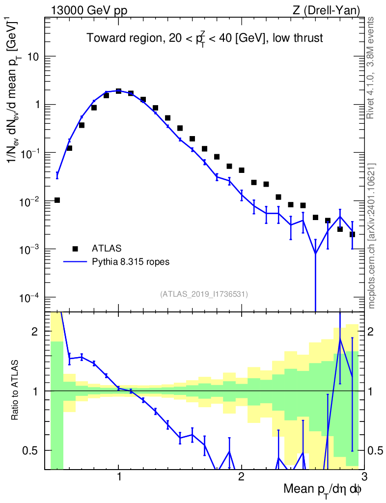 Lines: data, pythia8 8.315 ropes |