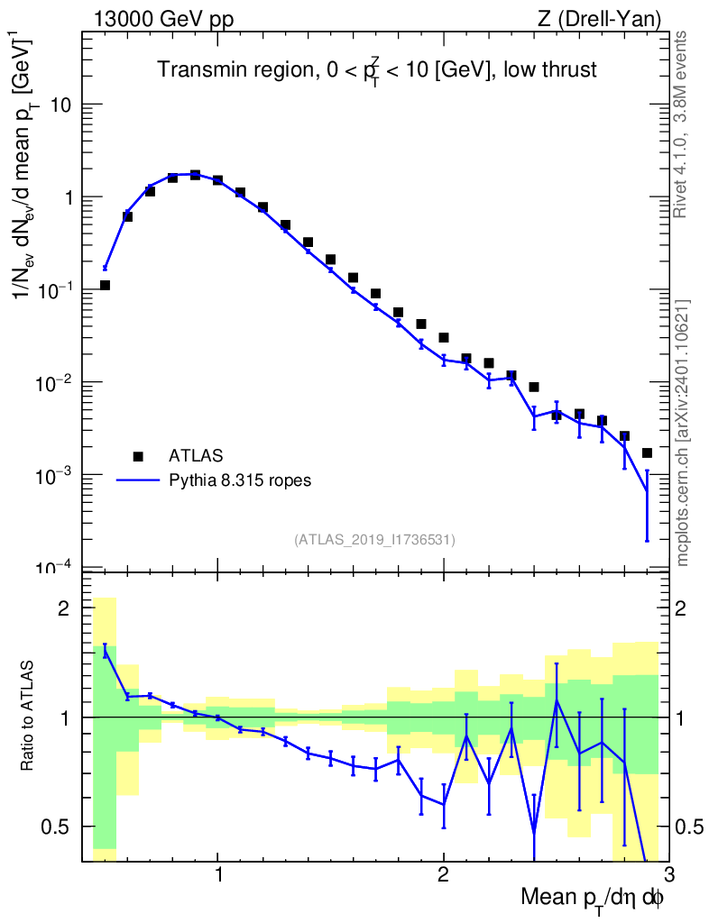 Lines: data, pythia8 8.315 ropes |