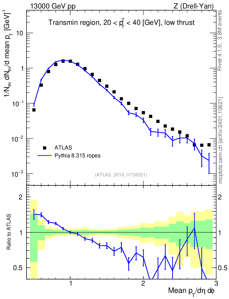 Lines: data, pythia8 8.315 ropes |
