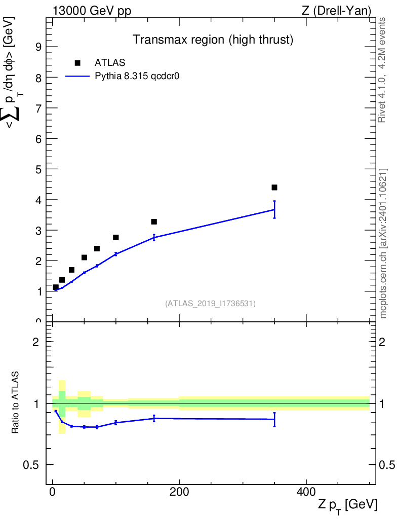 Lines: data, pythia8 8.315 qcdcr0 |