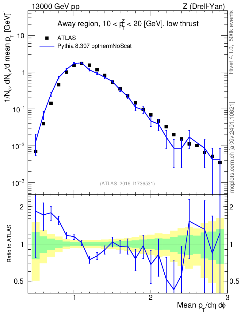 Lines: data, pythia8 8.307 ppthermNoScat |