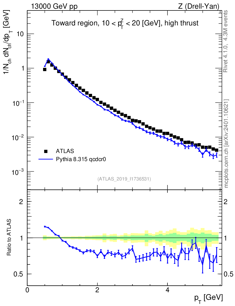 Lines: data, pythia8 8.315 qcdcr0 |