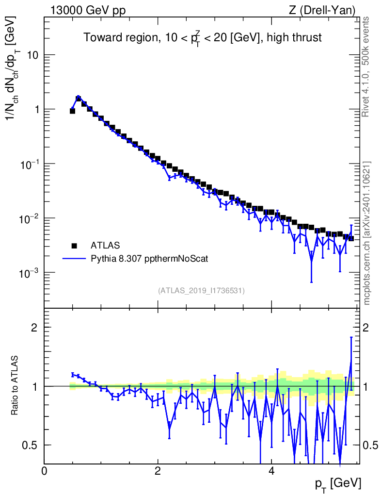 Lines: data, pythia8 8.307 ppthermNoScat |