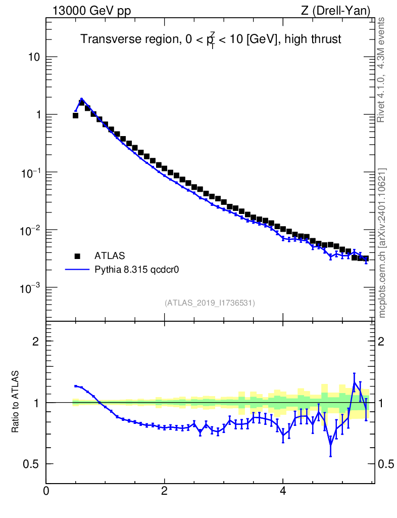 Lines: data, pythia8 8.315 qcdcr0 |
