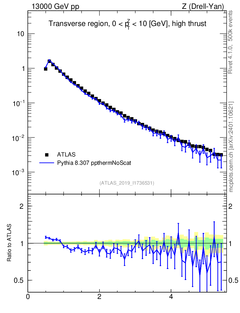 Lines: data, pythia8 8.307 ppthermNoScat |