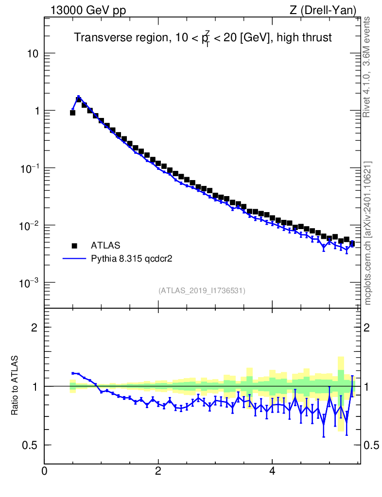 Lines: data, pythia8 8.315 qcdcr2 |