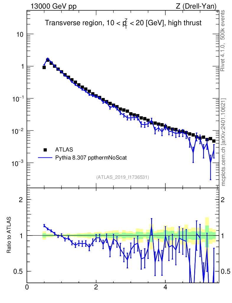 Lines: data, pythia8 8.307 ppthermNoScat |