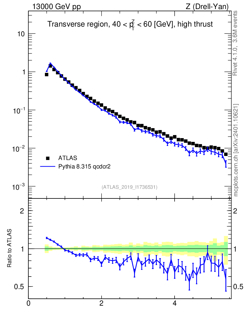 Lines: data, pythia8 8.315 qcdcr2 |