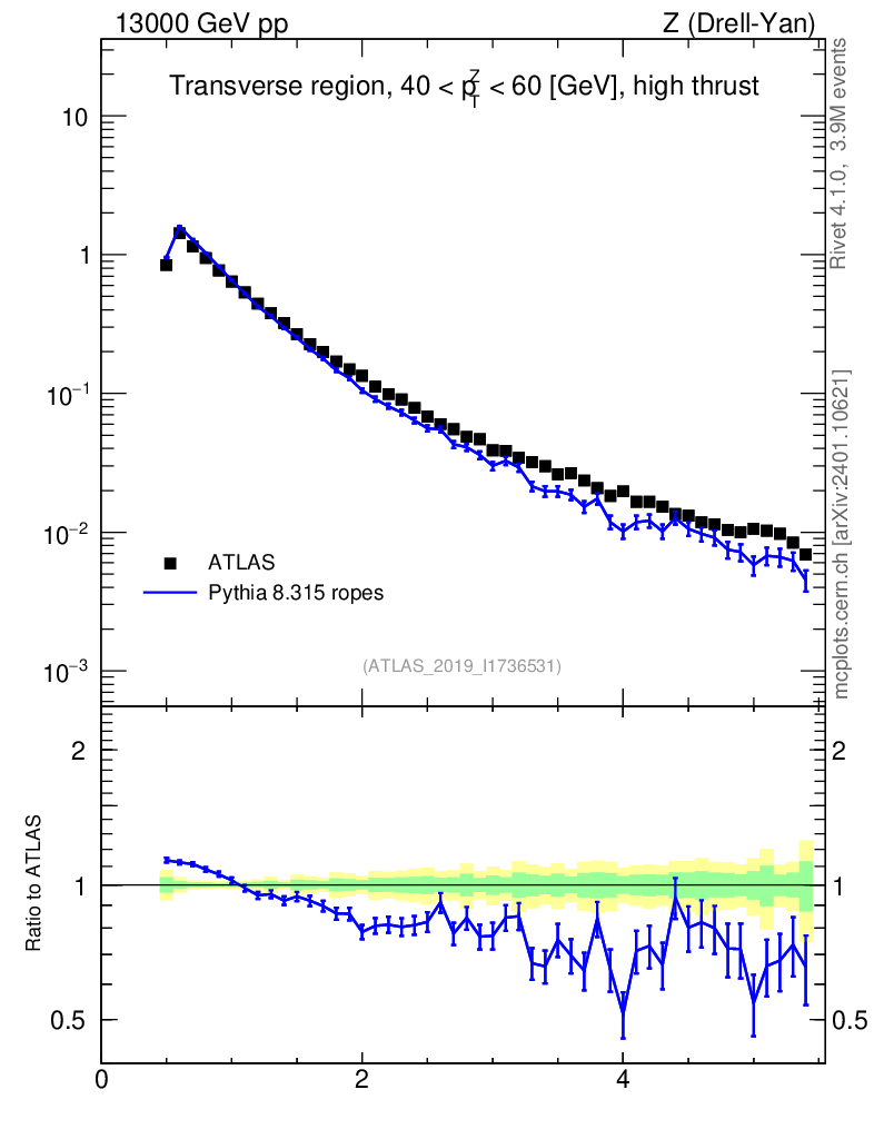 Lines: data, pythia8 8.315 ropes |