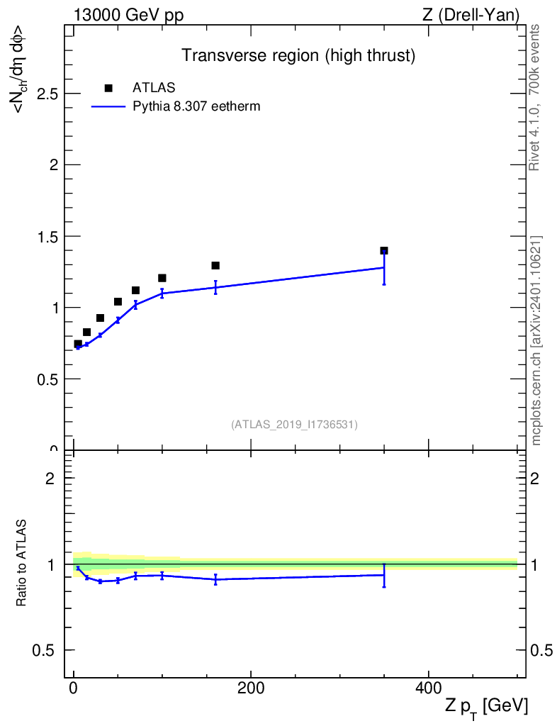 Lines: data, pythia8 8.307 eetherm |