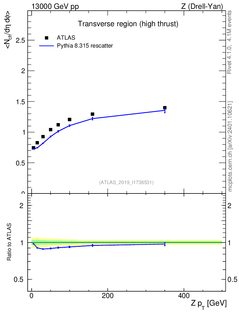 Lines: data, pythia8 8.315 rescatter |