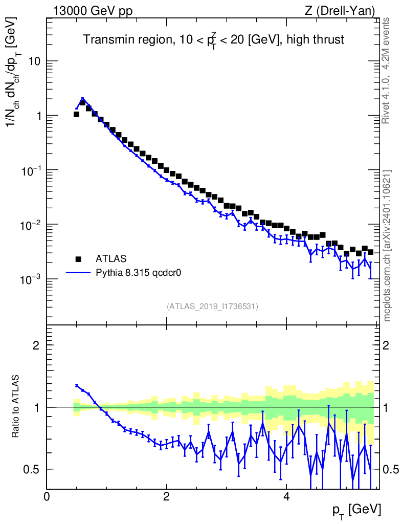 Lines: data, pythia8 8.315 qcdcr0 |