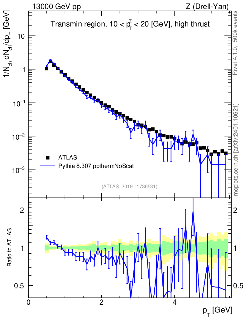 Lines: data, pythia8 8.307 ppthermNoScat |