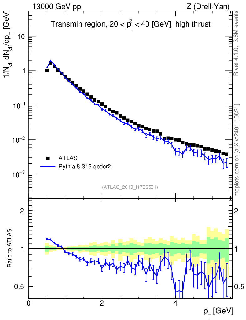 Lines: data, pythia8 8.315 qcdcr2 |