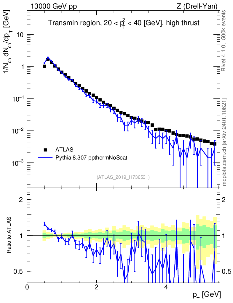 Lines: data, pythia8 8.307 ppthermNoScat |