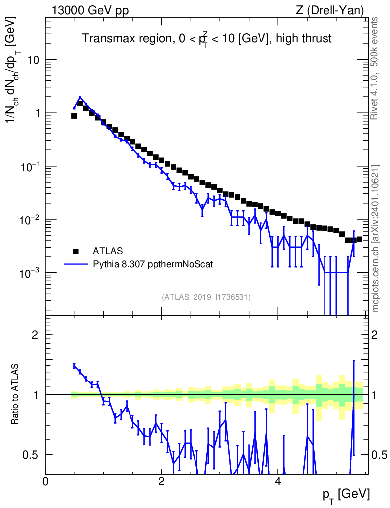 Lines: data, pythia8 8.307 ppthermNoScat |