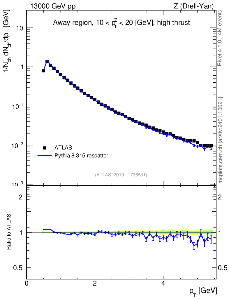 Lines: data, pythia8 8.315 rescatter |