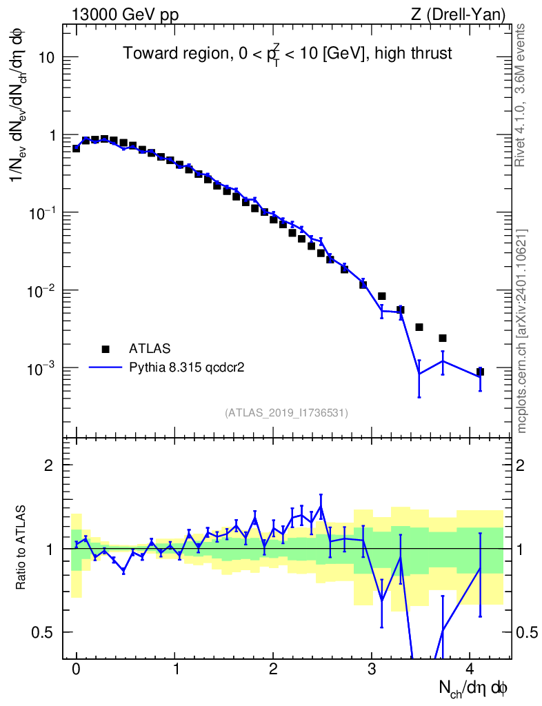Lines: data, pythia8 8.315 qcdcr2 |