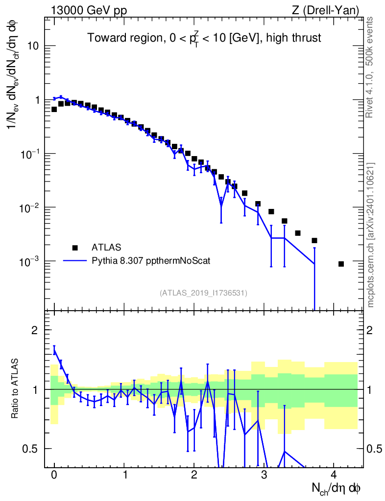 Lines: data, pythia8 8.307 ppthermNoScat |