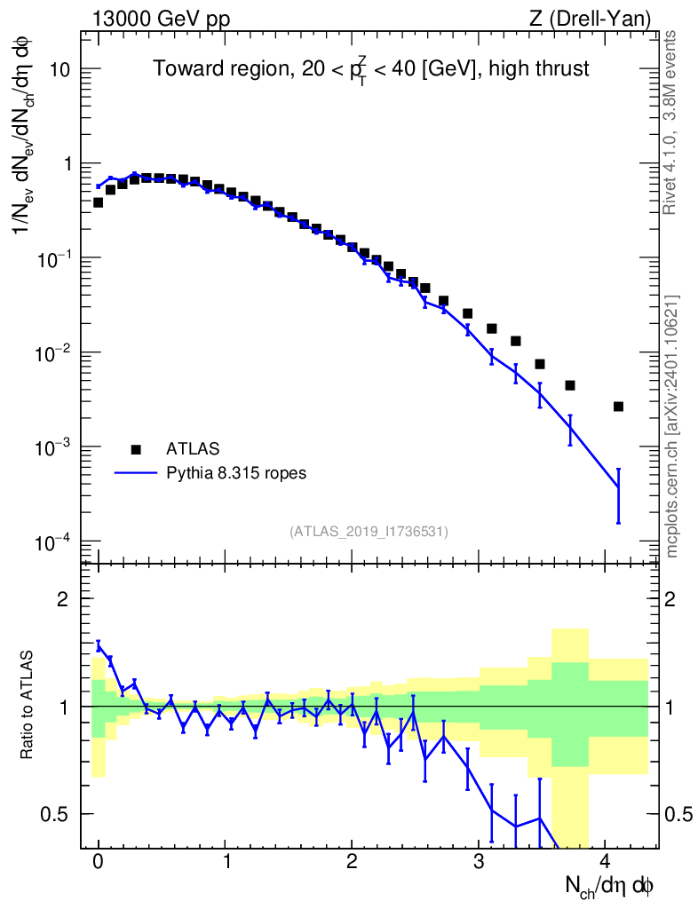 Lines: data, pythia8 8.315 ropes |
