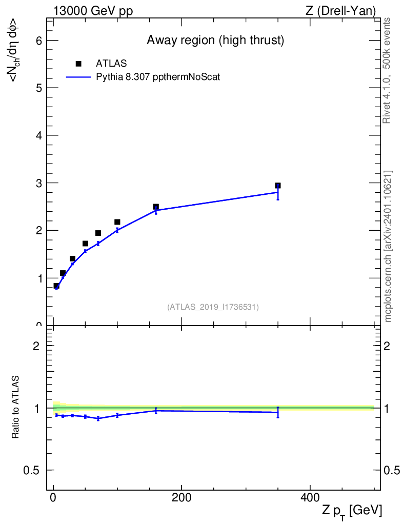 Lines: data, pythia8 8.307 ppthermNoScat |