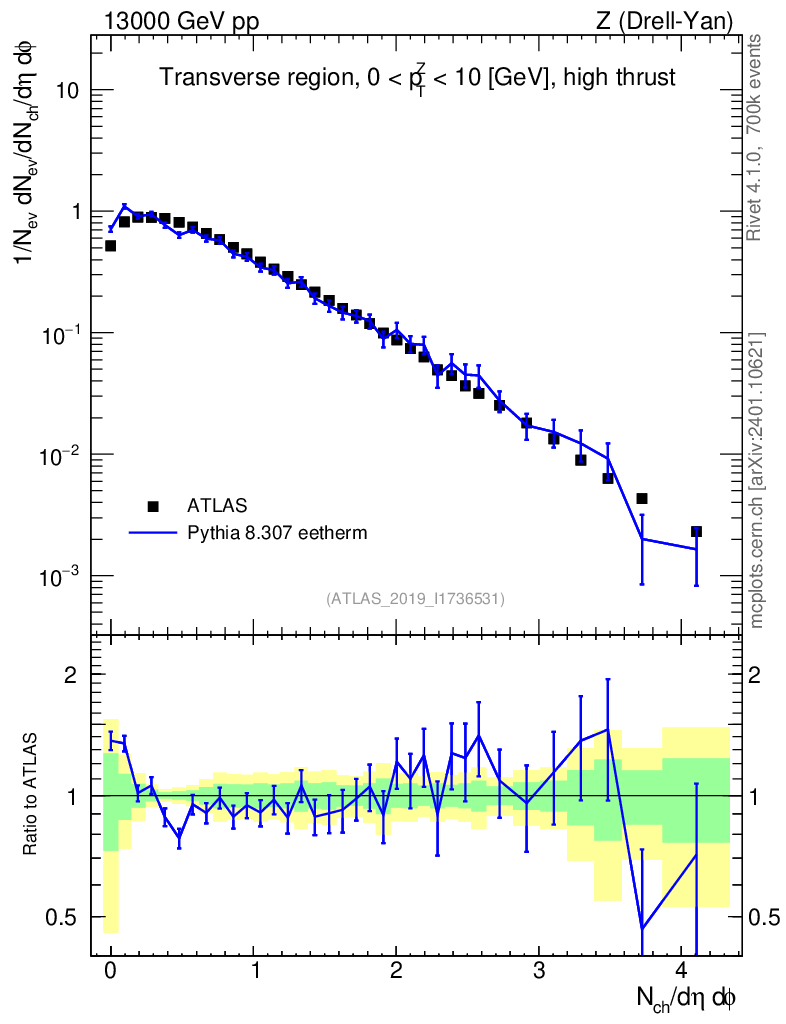 Lines: data, pythia8 8.307 eetherm |