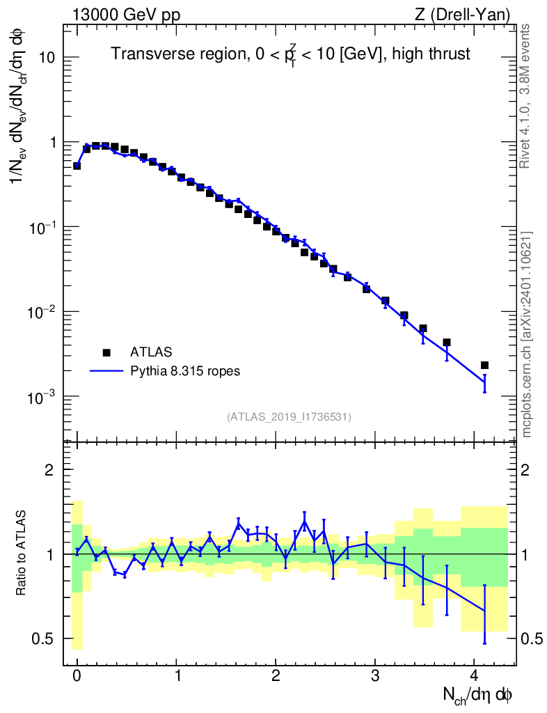 Lines: data, pythia8 8.315 ropes |