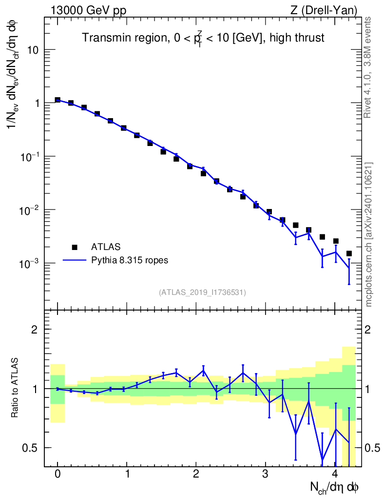 Lines: data, pythia8 8.315 ropes |