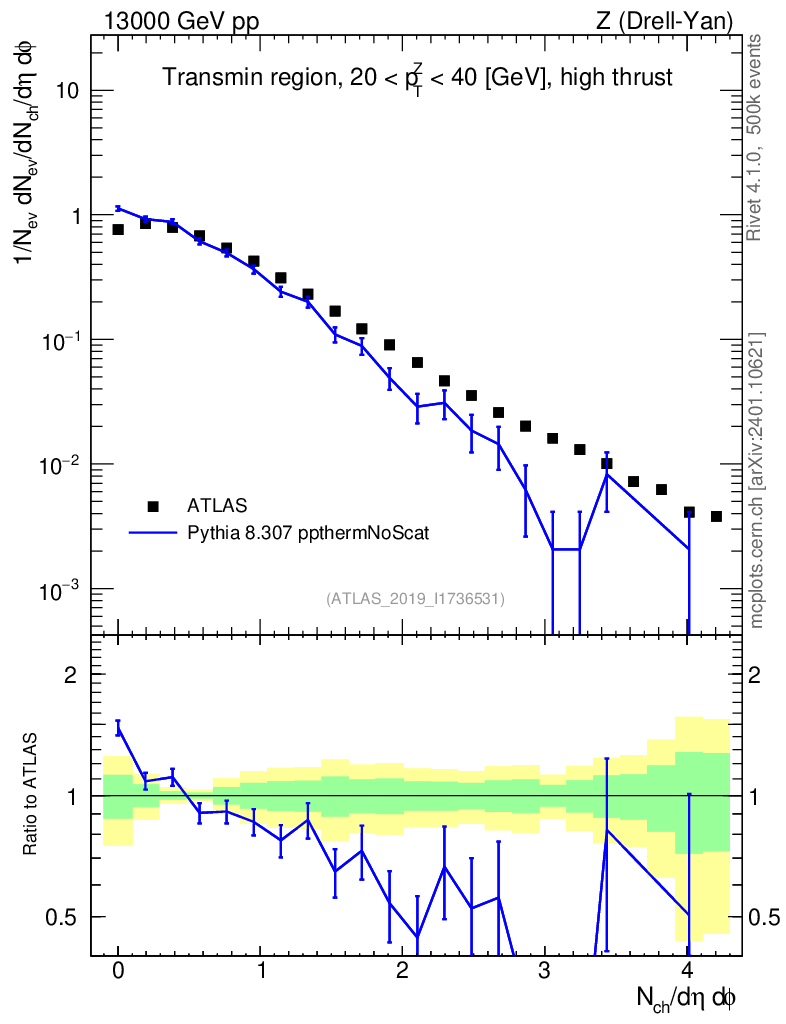 Lines: data, pythia8 8.307 ppthermNoScat |