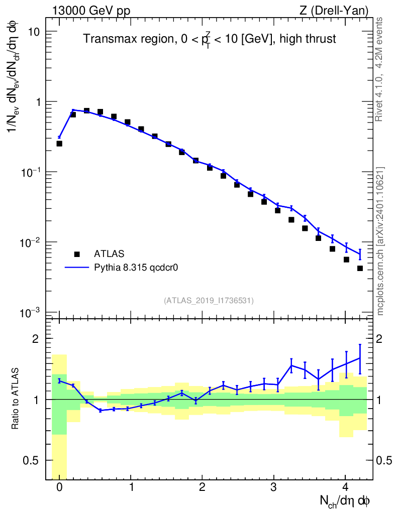 Lines: data, pythia8 8.315 qcdcr0 |
