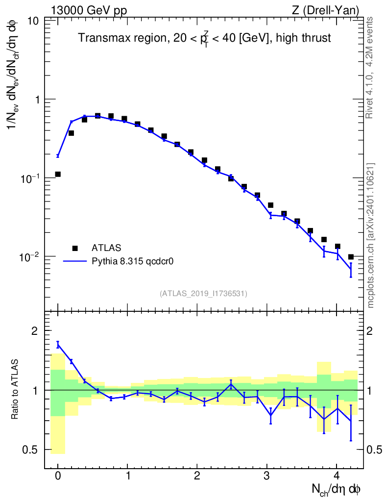 Lines: data, pythia8 8.315 qcdcr0 |