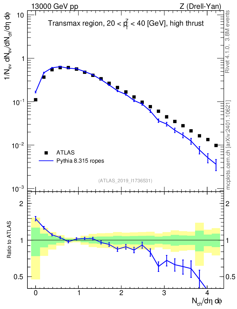 Lines: data, pythia8 8.315 ropes |