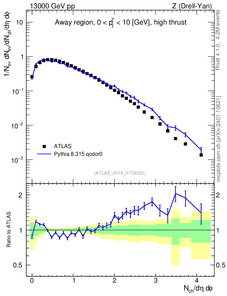 Lines: data, pythia8 8.315 qcdcr0 |