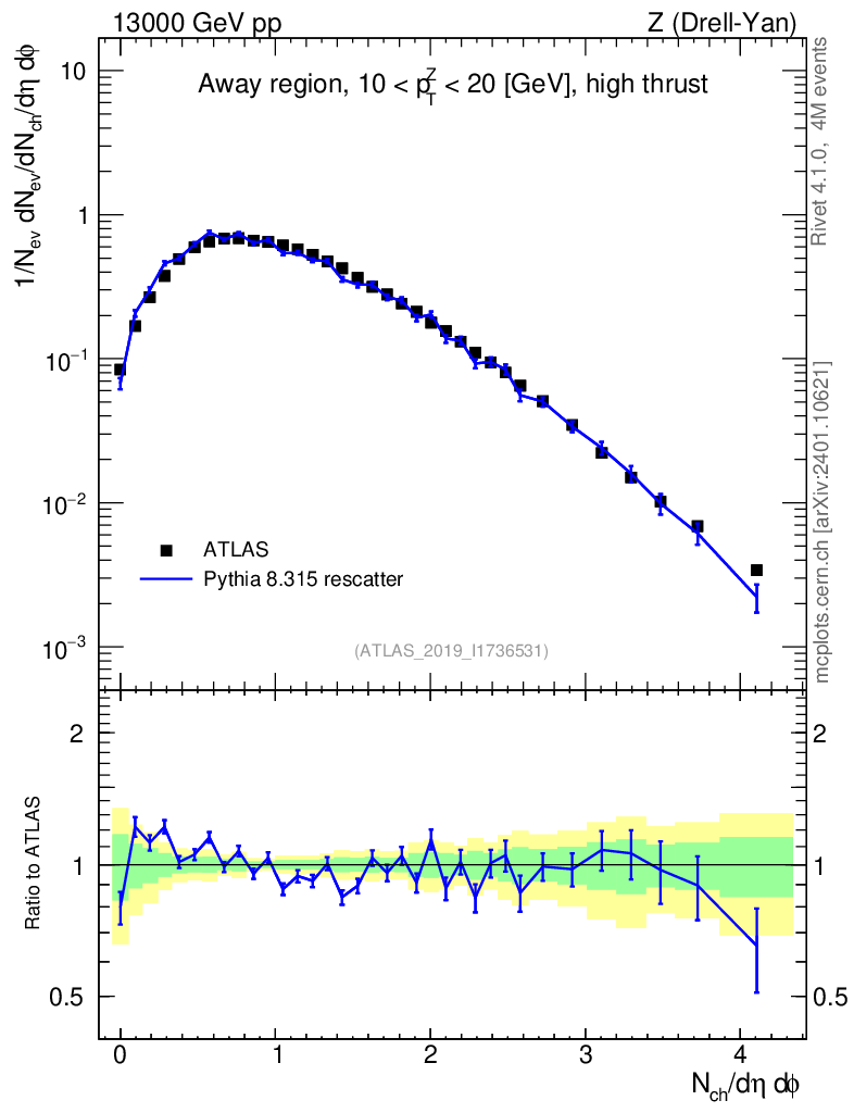 Lines: data, pythia8 8.315 rescatter |