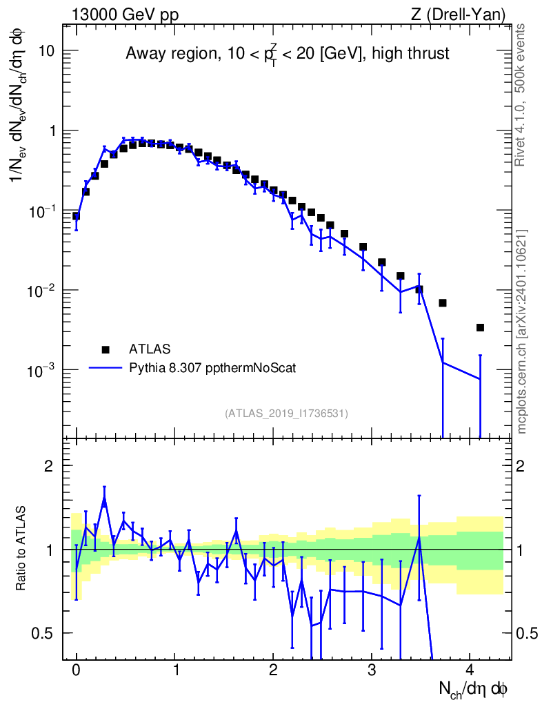 Lines: data, pythia8 8.307 ppthermNoScat |