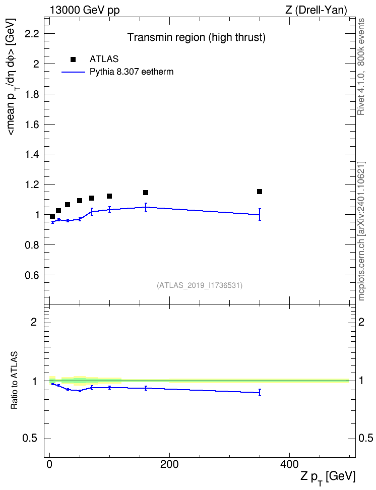 Lines: data, pythia8 8.307 eetherm |