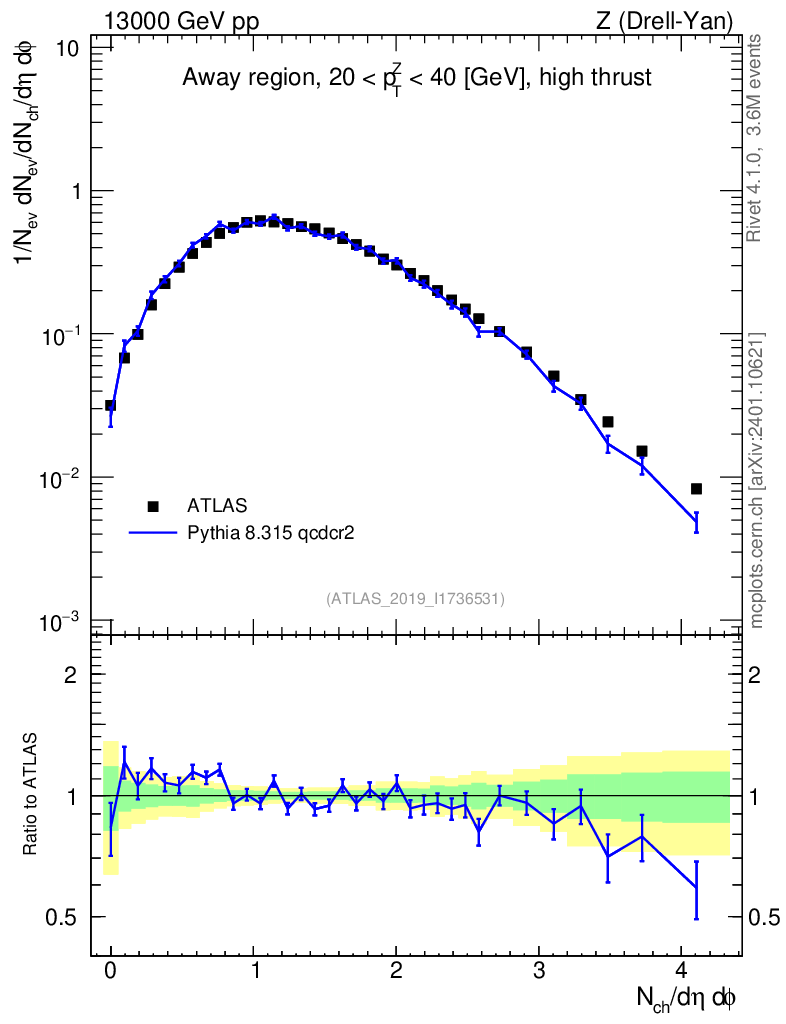 Lines: data, pythia8 8.315 qcdcr2 |