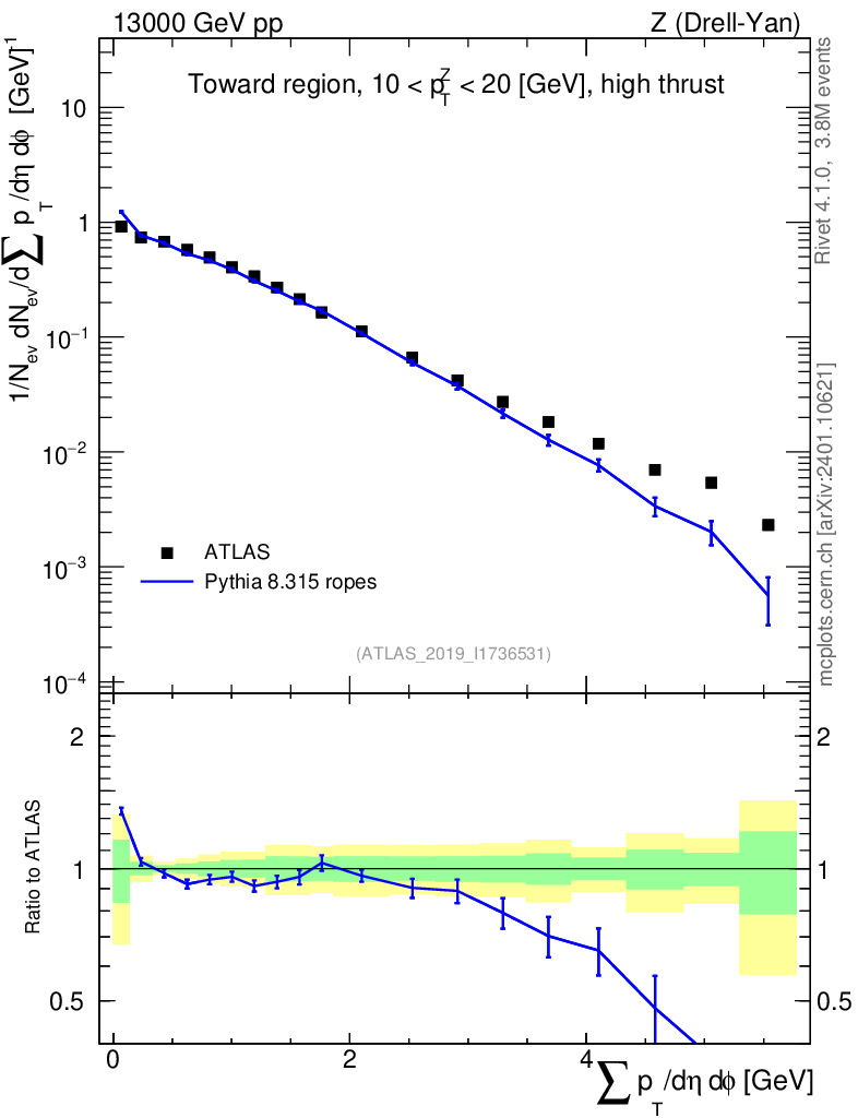Lines: data, pythia8 8.315 ropes |