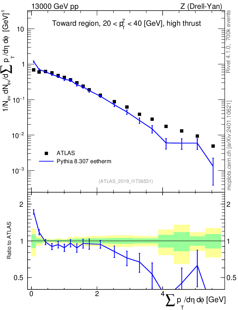 Lines: data, pythia8 8.307 eetherm |