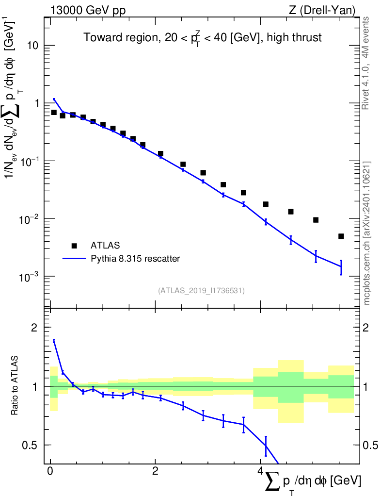 Lines: data, pythia8 8.315 rescatter |