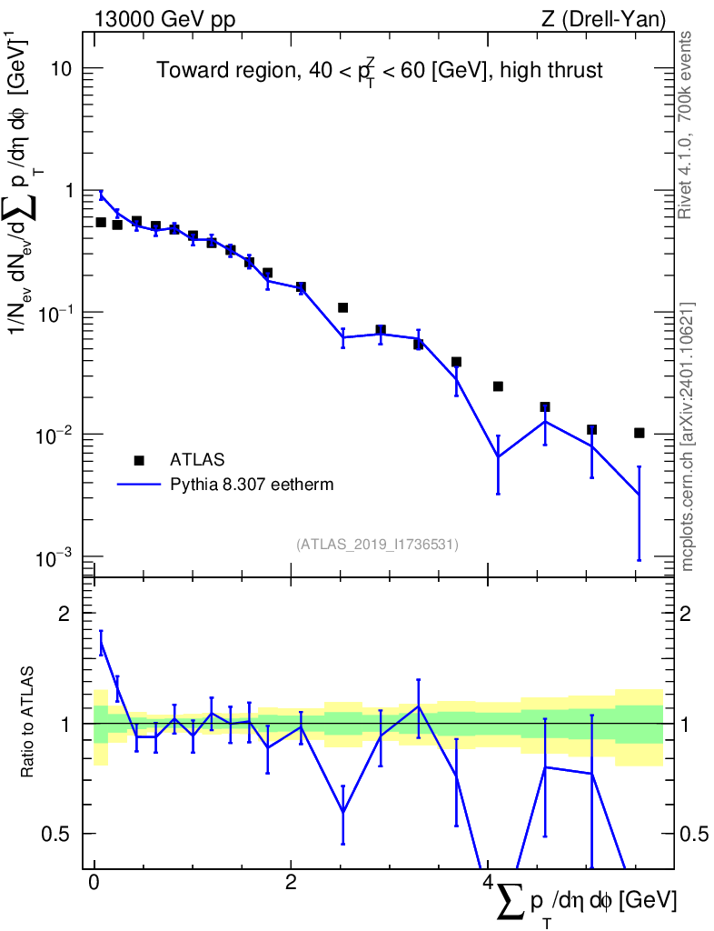 Lines: data, pythia8 8.307 eetherm |