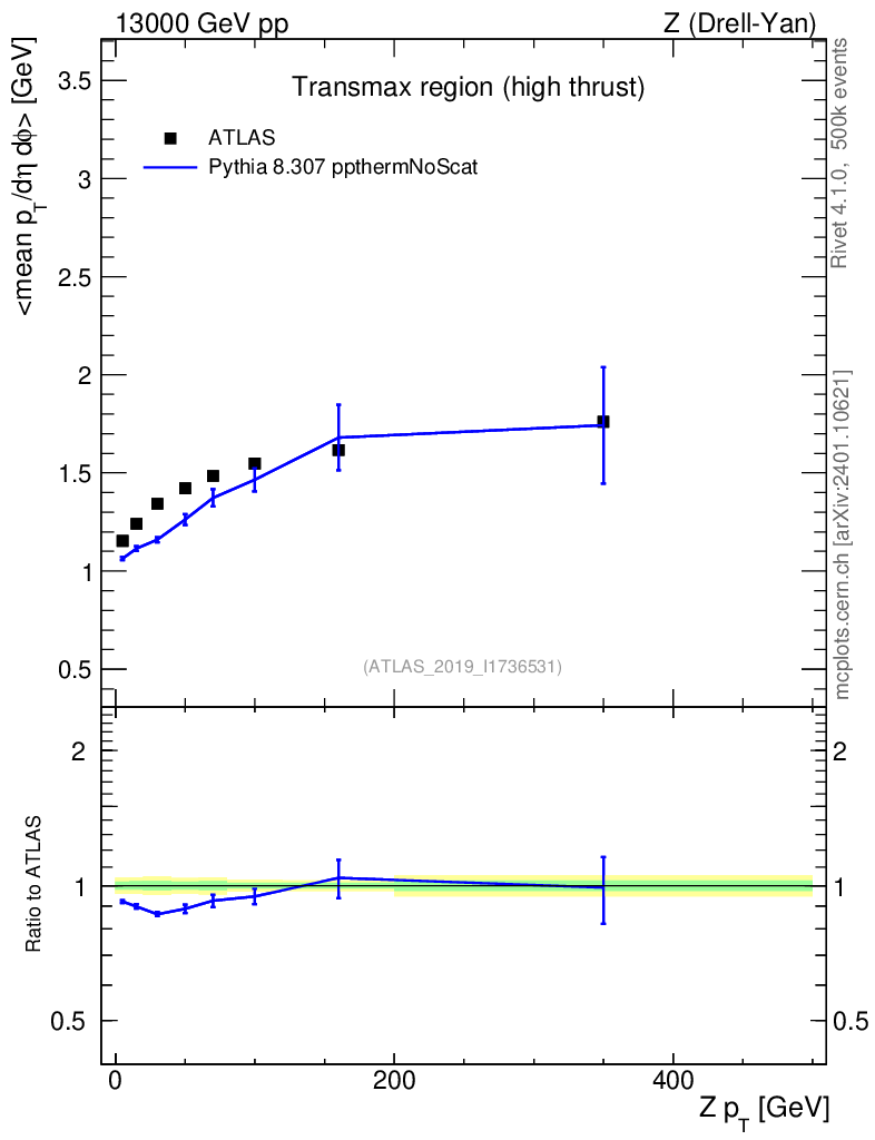 Lines: data, pythia8 8.307 ppthermNoScat |